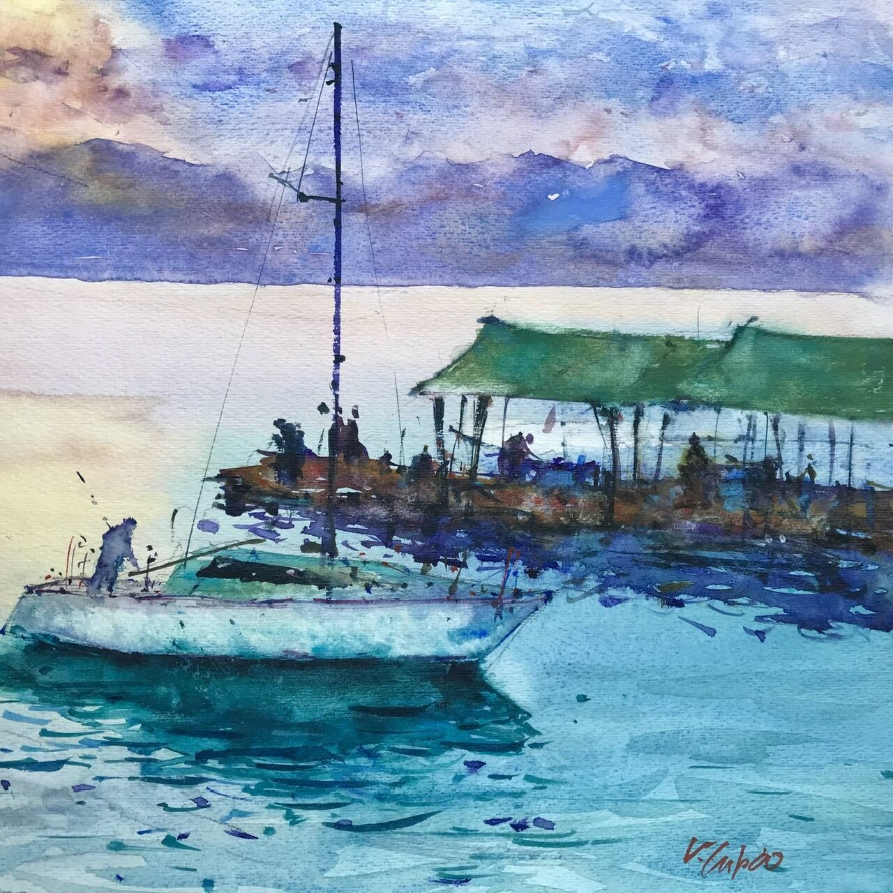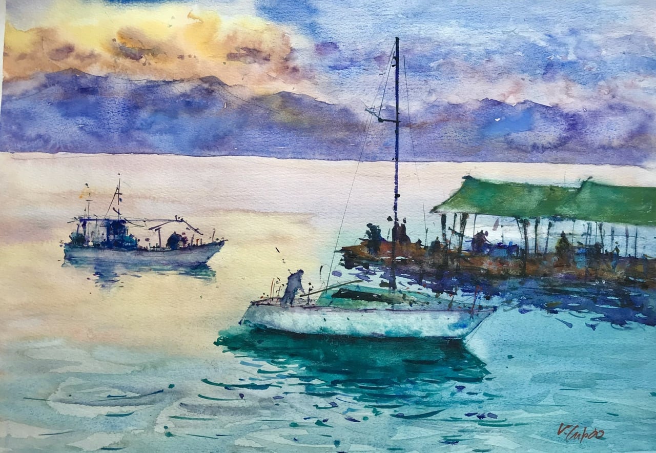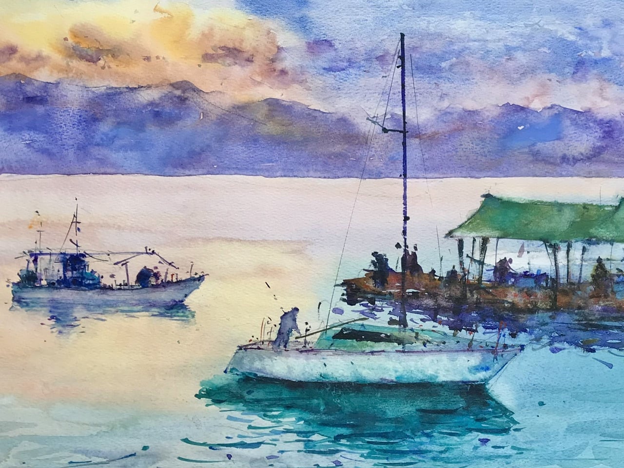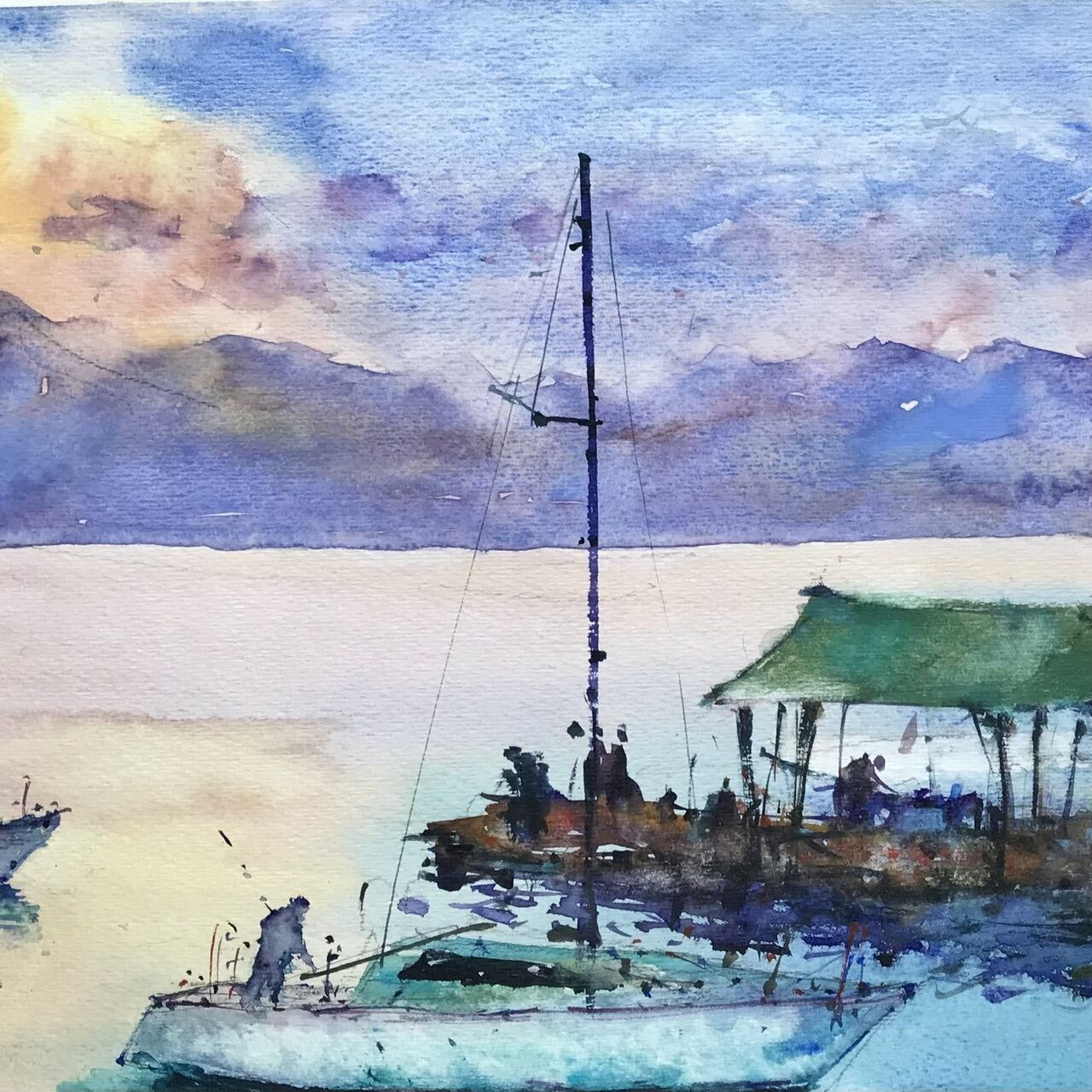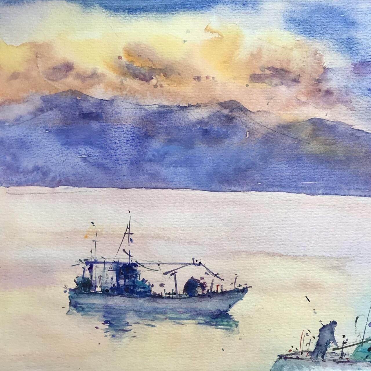 たぷーん たぷーんと揺れる水面に浮かぶ船。