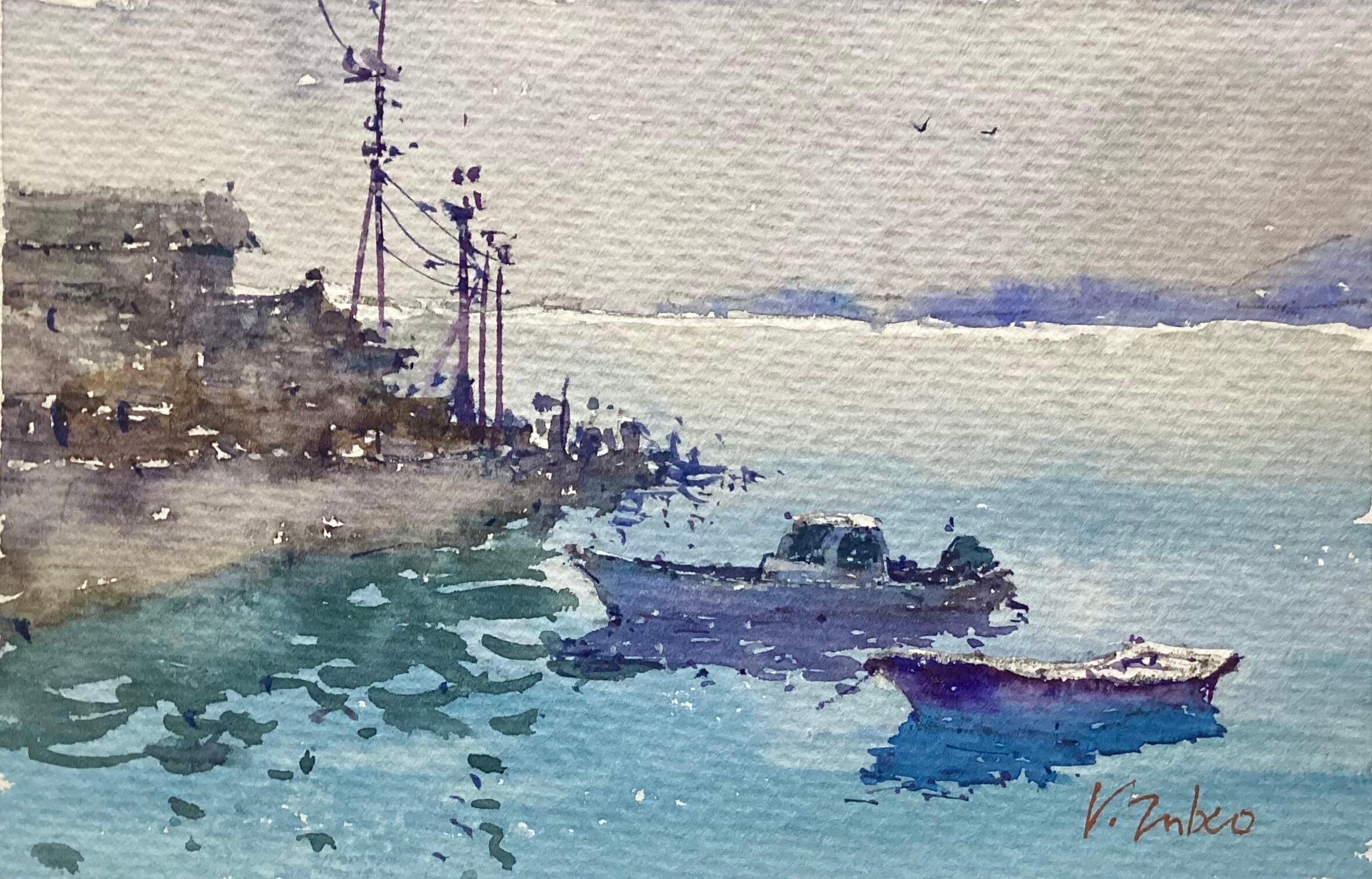 空を飛ぶ鳥が静かな絵に臨場感を添えています。